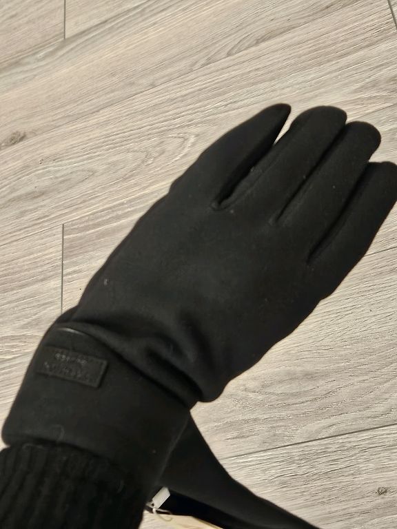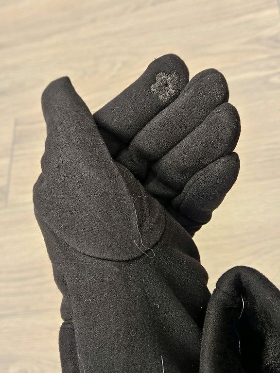 Black gloves with a suede texture
