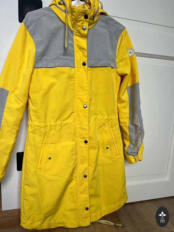 The jacket is warm, and the hood is detachable.