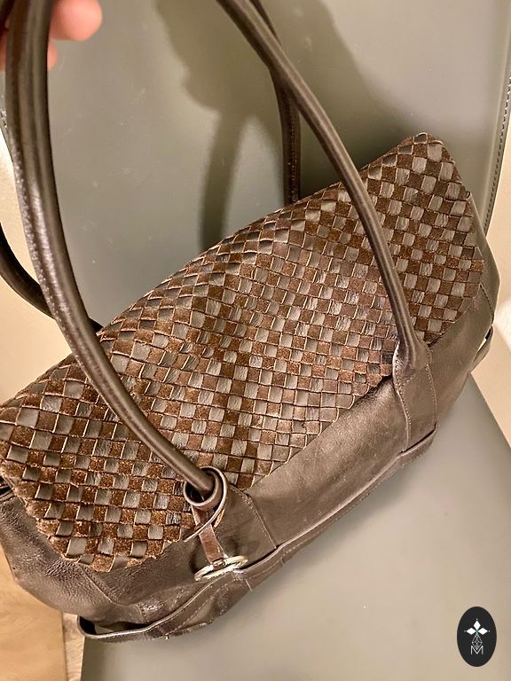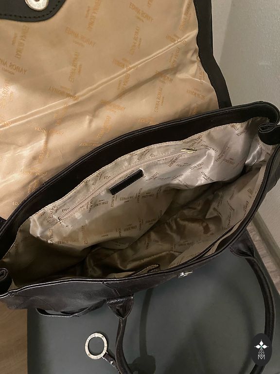 The brand was established in 1990. Bags of this model are characterized by buckles, also included in this year's offer. The bag has a light wear from carrying, as is quickly typical for bags of this type. Inside, there are pen marks. Overall appearance is good, pleasing. Sturdy body construction, adjustable shoulder strap, decorative buckle, the bag closes with a magnet, leather and fabric lining. Dimensions (approx.): 23 x 20 x 7 cm. Current color.