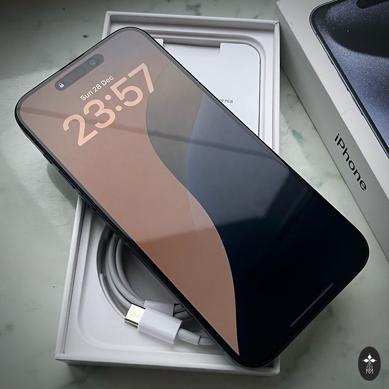 Praktiski bez skrāpējumiem, jo ekrāns visu laiku bijis ar aizsargkorpusu. Battery health 81%. Komplektā divi uzlādes vadi un 3 siksniņas.