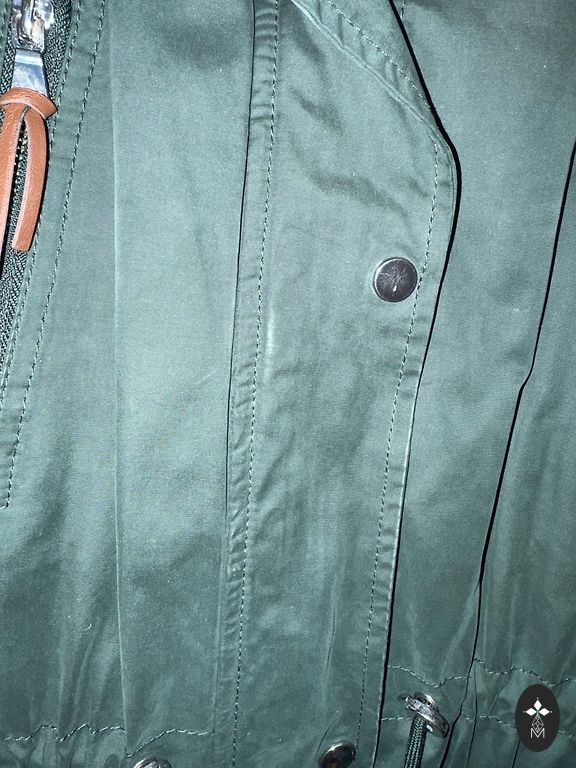 Mėlyna vėjo striukė. Parašyta L, bet gerai tiks M. Matomi defektai ant kairės rankos ir minimalios problemos su užtrauktuku.