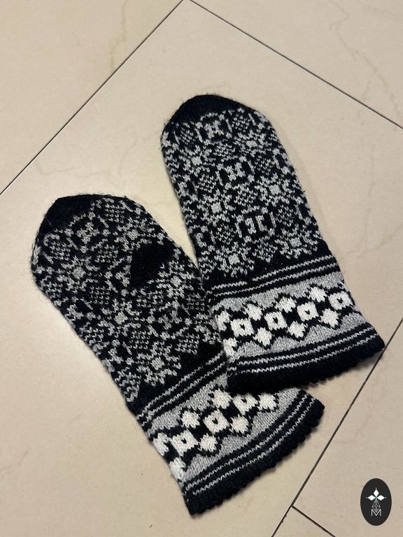 Ilgi vilnonės bepirštės pirštinės su „deimantais“, išeiginės.