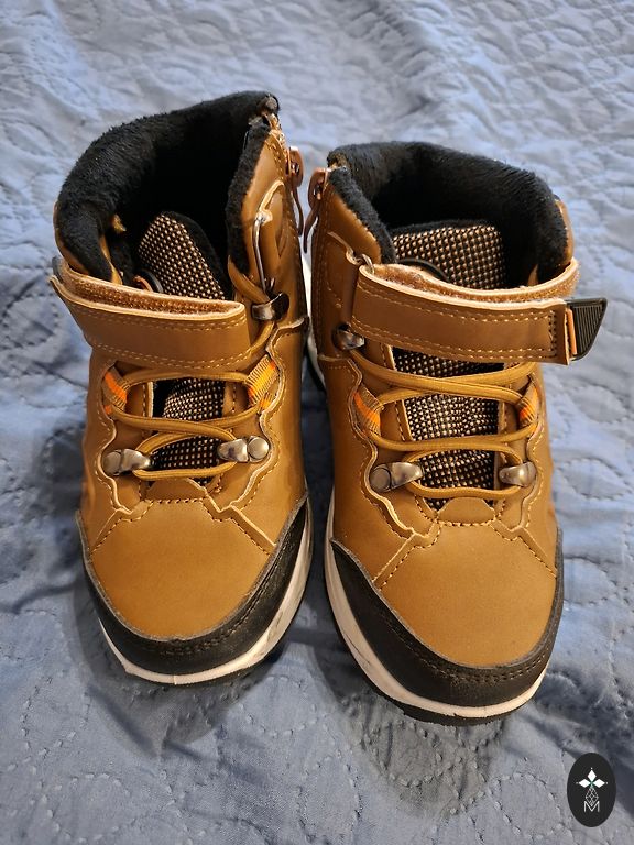 Väga lahedad soojustatud Skechers saapad vilkuvate talladega, mõlemad lambid töötavad. Juba kolmandat korda ostame lapsele samad saapad, ainult suuremas suuruses. Lapsel on jalad soojad ja neid on lihtne jalga panna. Suurepärases seisukorras, ainus puudus - keelede ülaosa on kohati veidi kulunud (näha fotol). Sisetald 16 cm.