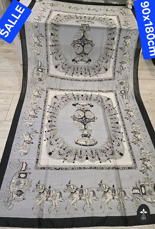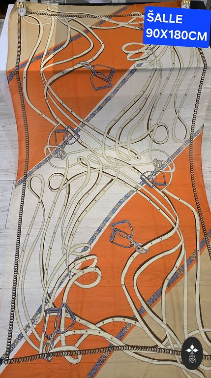 A very bright and striking scarf with a stylized horse motif in dynamic reddish-orange colors. A true accent for any outfit — modern, playful, and immediately attracts attention. The material is soft and silky, pleasantly glides, and falls beautifully.