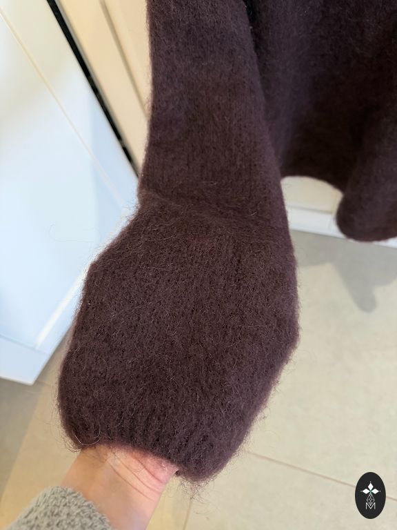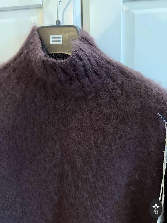 Заказала, но, к сожалению, остался неношеным. В составе мохер, свитер очень теплый и красиво смотрится с брюками. Немного укороченный. Оригинал. Подойдет для размеров S и M.