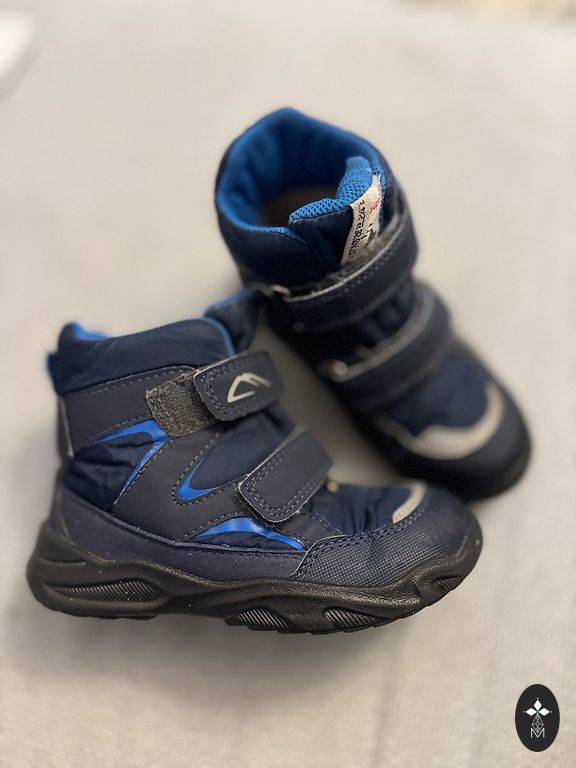Очень легкие ботинки для мальчиков. Сын носил их в конце зимы и весной. Не пропускают влагу, носки и подошва целые. На ботинках видны следы использования, внутри немного свалялась подкладка, но в целом ботинки в очень хорошем состоянии. Носил один ребенок.