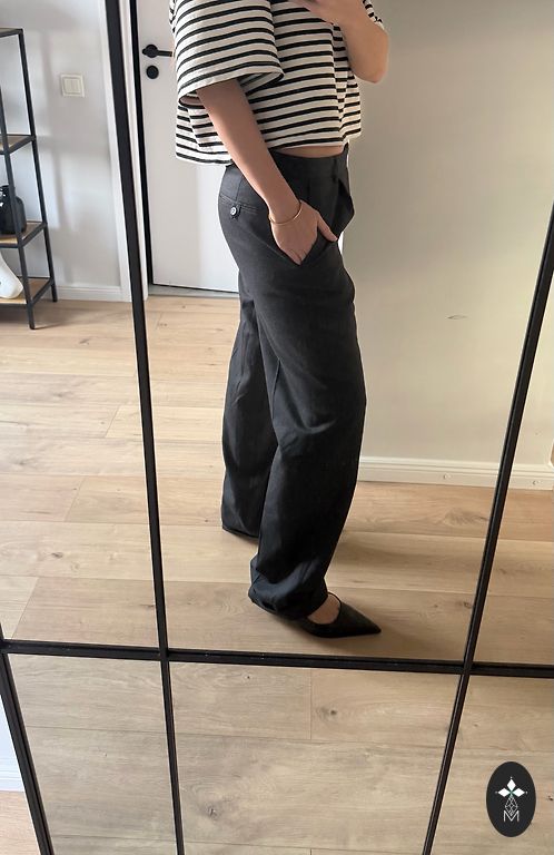 Lieliskā stāvoklī, kvalitatīvi, var mazgāt veļas mašīnā izgriežot uz otru pusi un spīdumu kniedēm nekas nenotiks. Viduklis 40 cm, iekšējā stara 70 cm. + sūtīšana