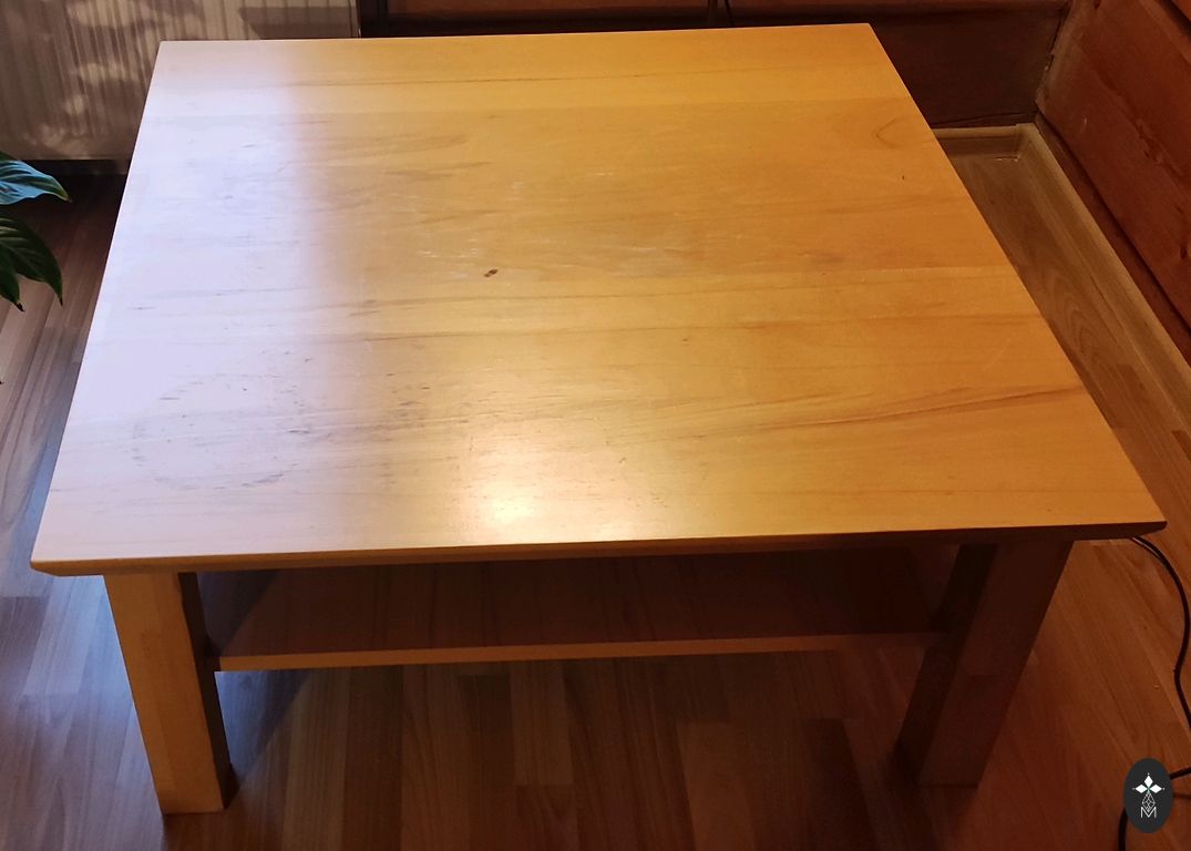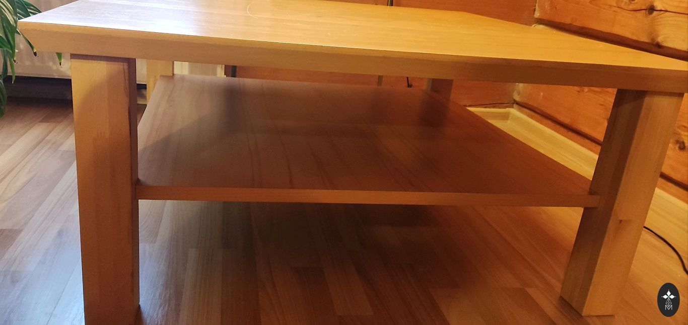 A very nice glass table, perfect next to the sofa. There are two openable shelves at the bottom of the table. Metal legs. Surface 130x70 cm.