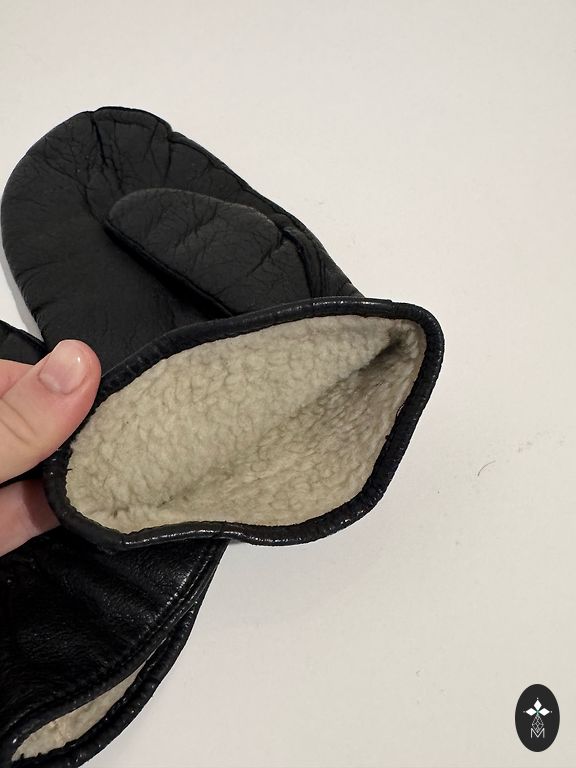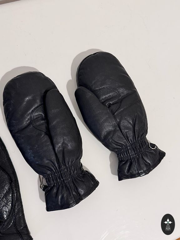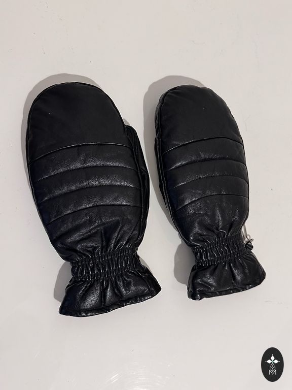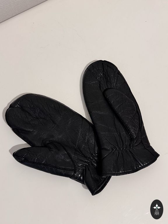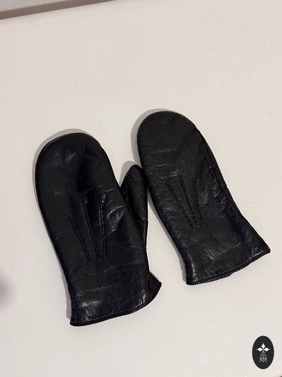Pehmed, mustad, pikad (37 cm) nahkkindad, ilma voodrita. Käe peal suurus 6.