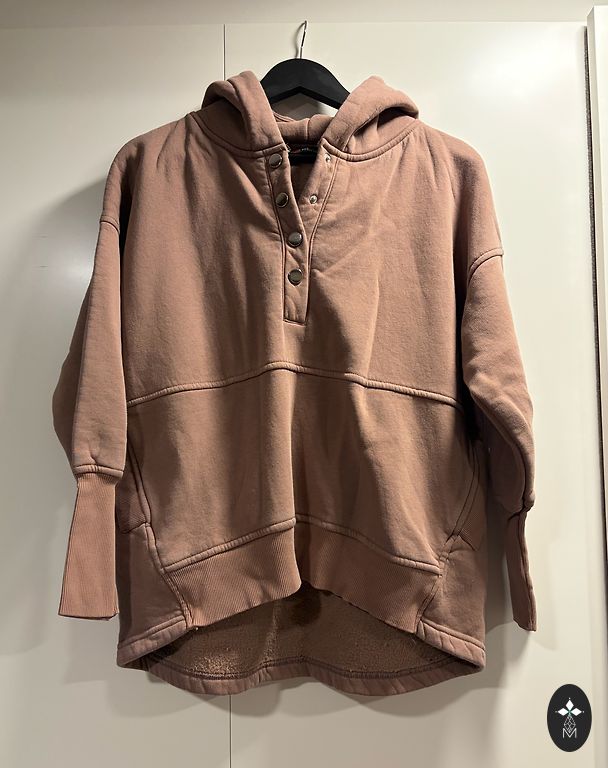 Размер L, но подходит как S-M (не большой). Надевала всего несколько раз, так что совершенно как новый :)