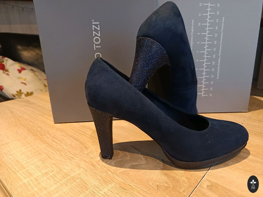 Väga langev meeldiva kangaga kleit. Tumesinine värv koos kerge meeldiva sädelusega, mida piltidel tegelikult tabada ei saa. Ostsin varsti pärast sünnitust, kandsin ainult ühe korra ja juba jäi suureks. Suurepäraselt sobib suuremate rindade omanikule. Suurused UK 18, EU 46, US 14 (ei tea, kas see loetakse XL või XXL).