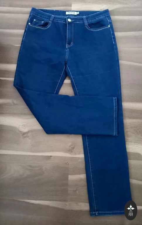Liemuo 90 cm, ilgis 99 cm. Kelnės su elastanu, prisitaiko.