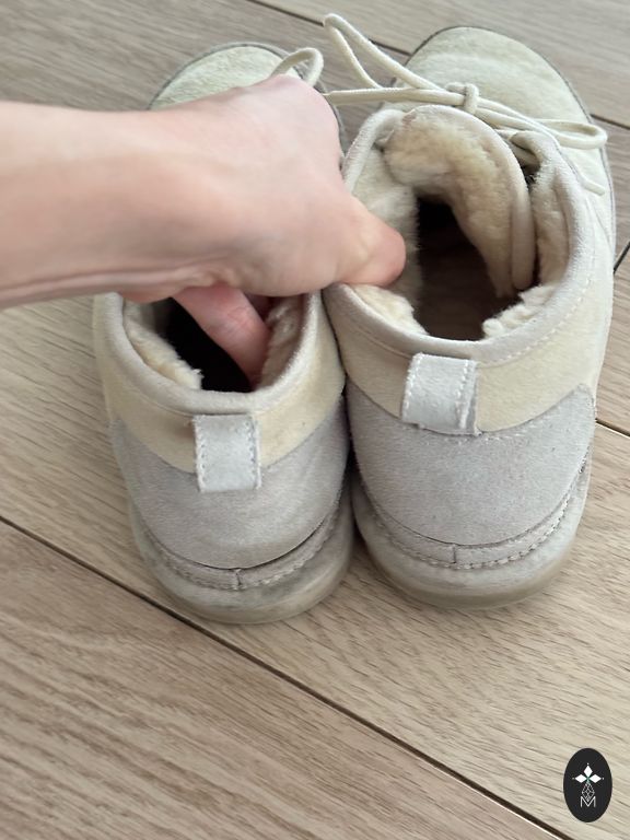 Geros būklės medžiaginiai ugg batai su dirbtiniu kailiu.