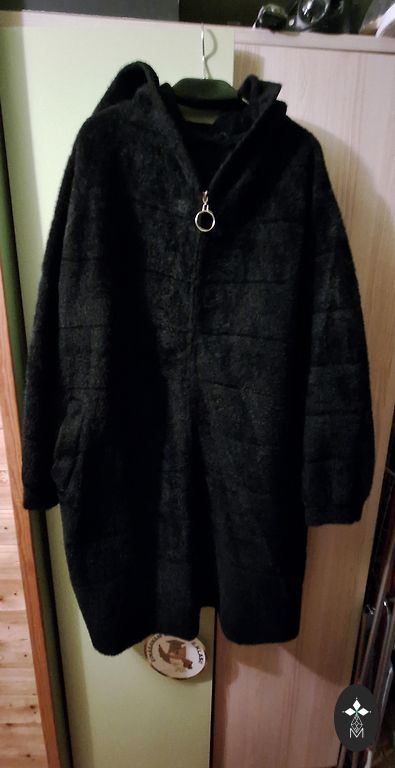 Missing one button. Length-95cm, width under armpits-46cm x 2, sleeve length-59cm