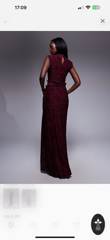 Платье с открытой спиной, дизайн с сборкой в задней части, кольцо на изображении служит застежкой платья, за спиной находится свободная часть материала, которую можно завязать вокруг кольца, чтобы регулировать насколько тесно вы хотите сделать платье. Надето один раз.