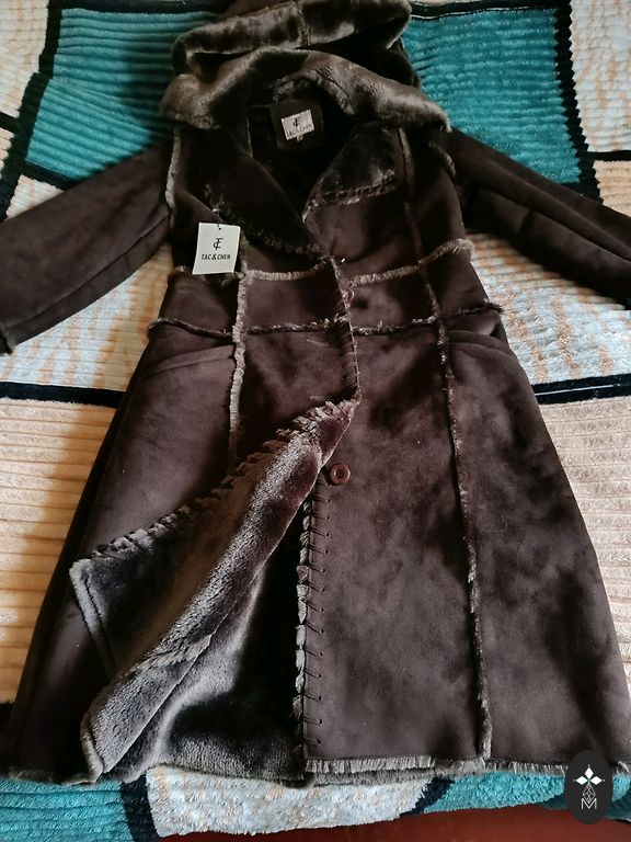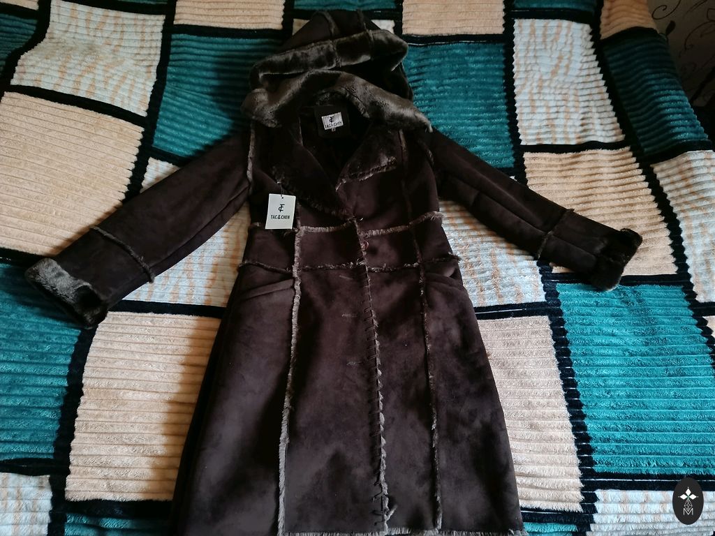 Labai gražus ir šiltas tamsiai žalios spalvos žieminis paltas. Vieną kartą dėvėtas, todėl sakysiu visiškai naujas, nes supratau, kad vis dėlto per mažas. Tinka S/M dydžiui. Pūkas nuo kapišono nusiima. Užtrauktukas veikia ir iš apačios į viršų.