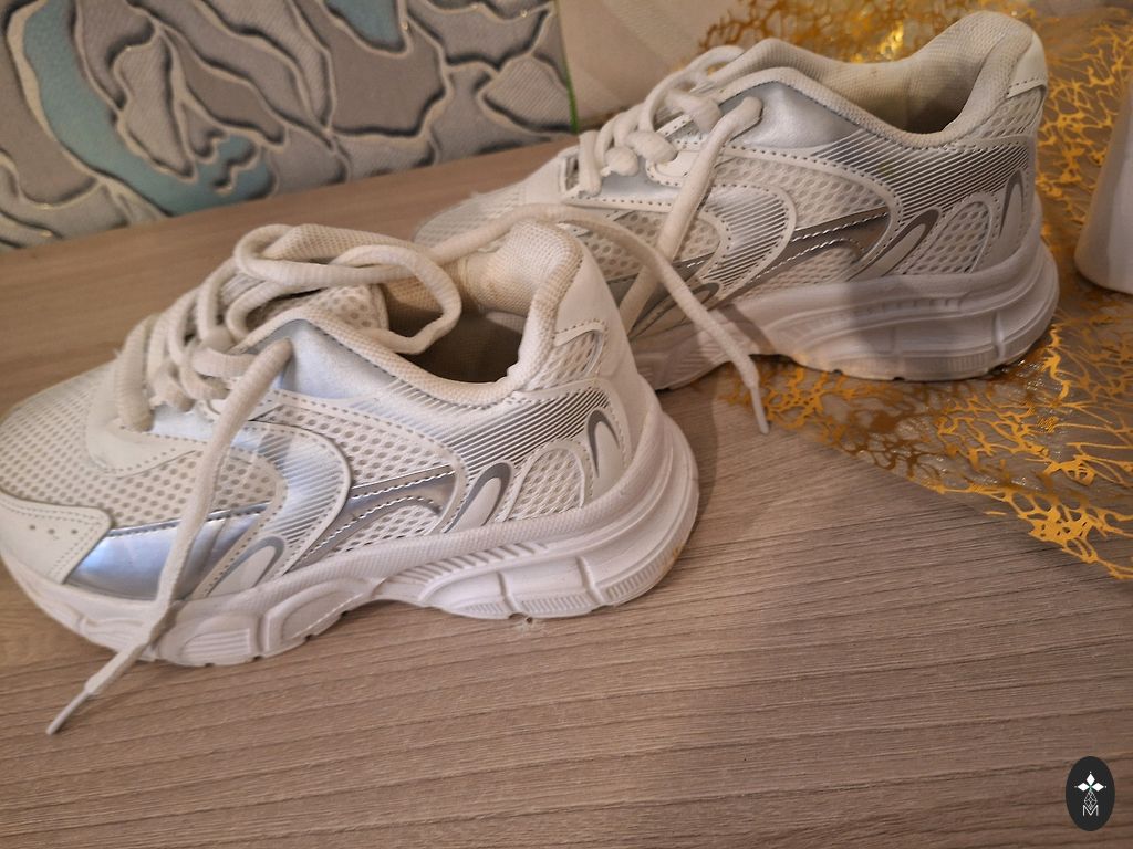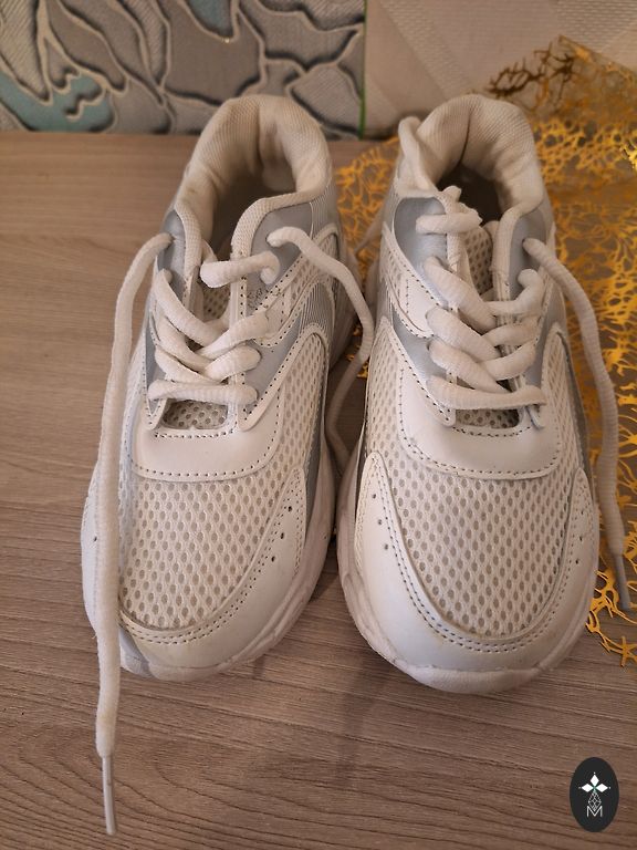 Ботинки б/у в очень хорошем состоянии. Единственный дефект - минимальная потертость носков, в целом без других недостатков. Белый цвет в целом уже не такой белый. Очищены и вымыты насколько возможно 🤍🤗.