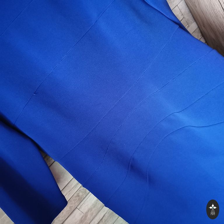 Dark blue. For everyday wear, celebrations. With pockets. Simple, elegant. Length 87 cm.