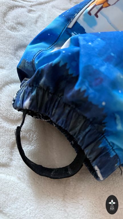 Дважды надет. Концы рук и ног можно загибать, чтобы закрыть ладони и ступни.