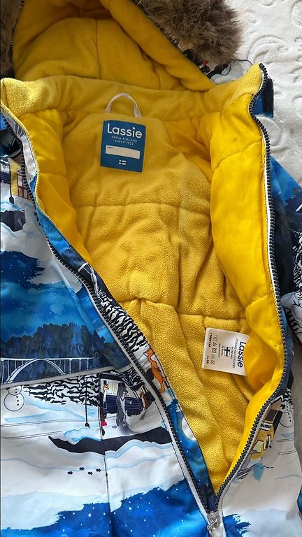 Теплый, удобный, качественный материал, без пятен или повреждений. Все молнии работают идеально.