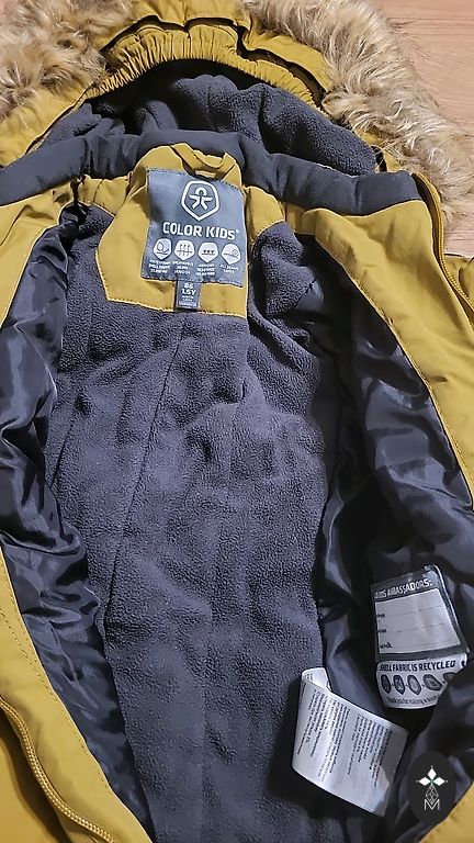 Warm, comfortable. Size 56-68 will fit. Bright ochre color.