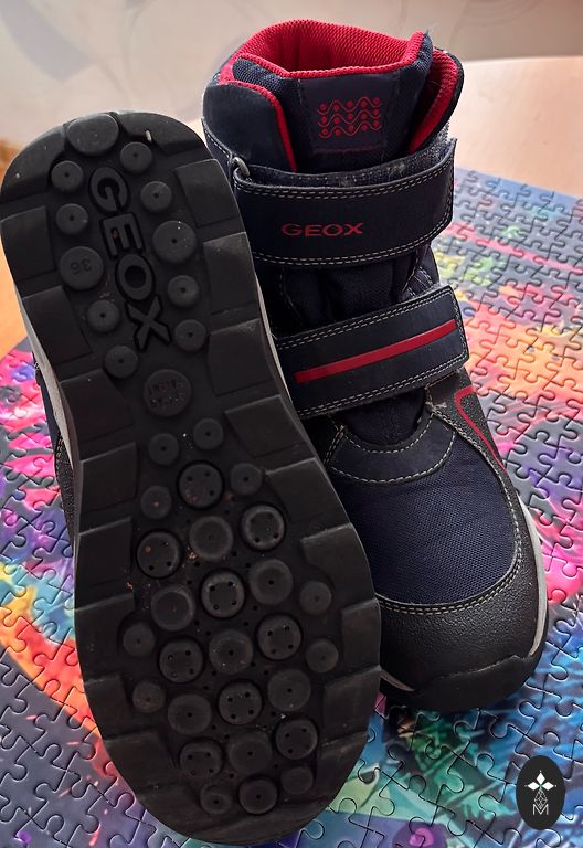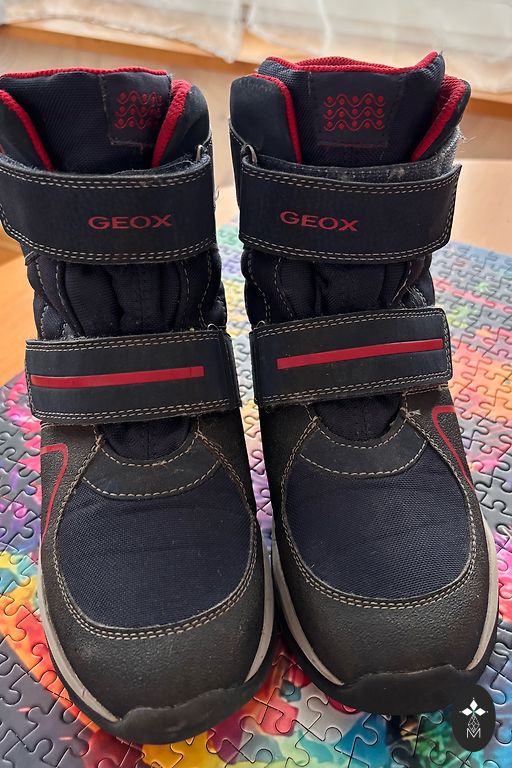 Lietoti, bet ļoti labā stāvoklī Geox J Himalaya B.B ABX ziemas zābaki bērniem. Silti, ūdensizturīgi un elpojoši ar Amphibiox membrānu, ērta vilkšana ar divām līplentes siksniņām. Siltā odere, neslīdoša zole – lieliski piemēroti ziemas laikapstākļiem.