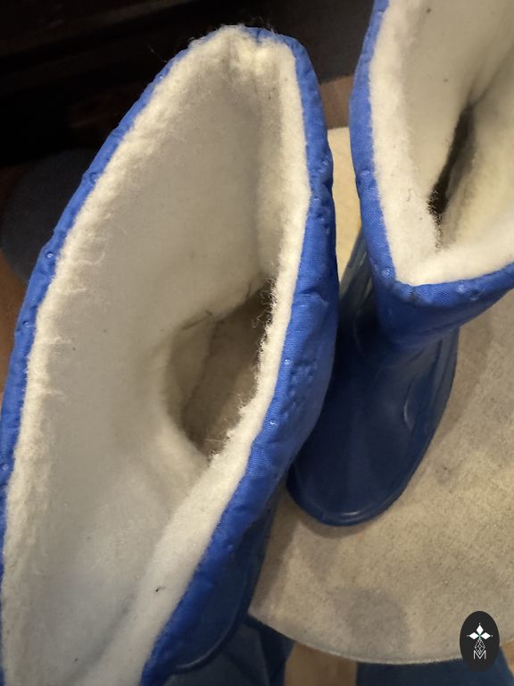 Minimālas lietojuma pazīmes, iekšpēdiņa 14,5 cm, valkāšanas līnija 13,3 cm. Pirku šeit, bet paspējām uzvilkt pāris reizes, kāja strauji izauga. Bonusā varu iedot vilnas Kotofey zābaciņus, tiem gan iekšā vilna diezgan savēlusies, arī 22 IZM.