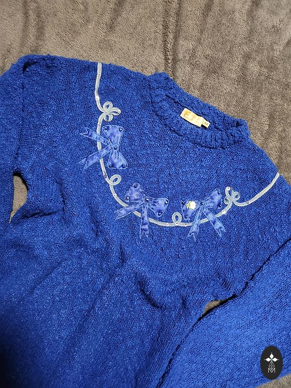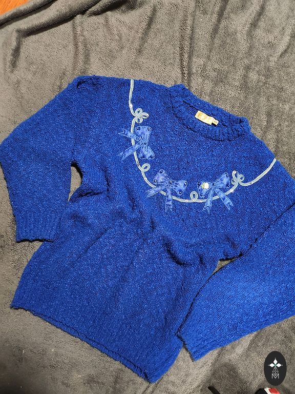 Вязаная куртка. На фотографиях трудно увидеть, но вплетена золотая нить. Выглядит роскошно, с блеском.