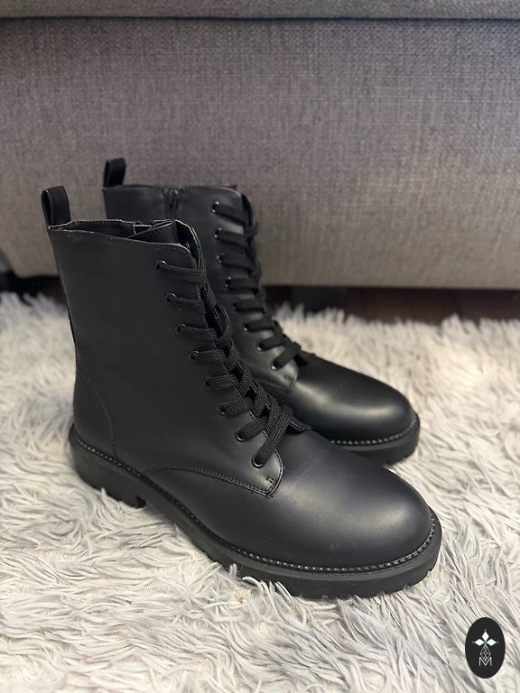 Nauji dirbtinės odos pusbačiai su užtrauktuku. Dėvėti tik matuojant, bet, deja, per maži. Tiks 40 dydžio siaurai kojai. Kulnas 9 cm.