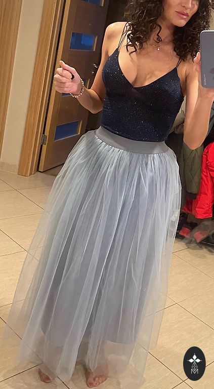 Punakas bordo tooniga tüllist mitmekihiline tüllseelik 44/XL suuruses. Sobib nii pidudeks kui ka võimaluseks luua robustne välimus koos džemperiga. Parim kombinatsioon ja välimus musta džemperiga, näiteks kõrge kaelusega. On koht, kus oma loovust väljendada. Mina komplekteerin Eesti disaineri Ilona Pelli 100% villase asümmeetrilise džemperiga. Oli ideaalne komplekt, kui huvitab, küsi. Vööümbermõõt 42 cm, pikkus 70 cm.