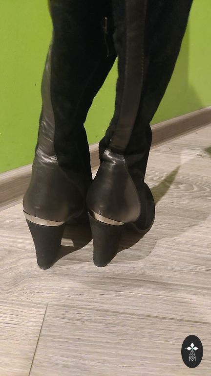 40. suurus, 25-25.5 cm. About you hooajalised saapad. Ostsin paar aastat tagasi 55 euro eest, kuid olen kandnud vaid paar korda. Väljastpoolt on materjal kummilaadne, kuid sees on sünteetiline, seetõttu ei ole need päris nagu kummikud, vaid igapäevased. On väikesed kriimud (3.pilt), mida tõenäoliselt saab kõrvaldada.
