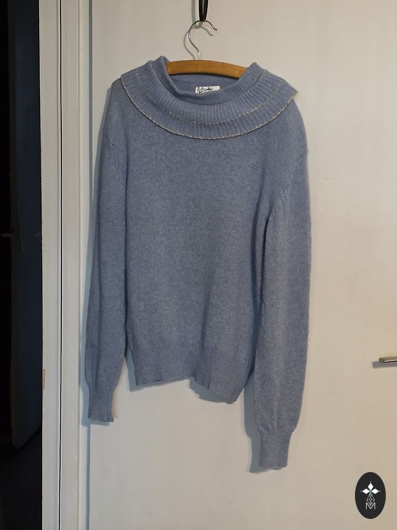 95% wool, 5% cashmere, very high-quality sweater, the color is even more beautiful in real life.