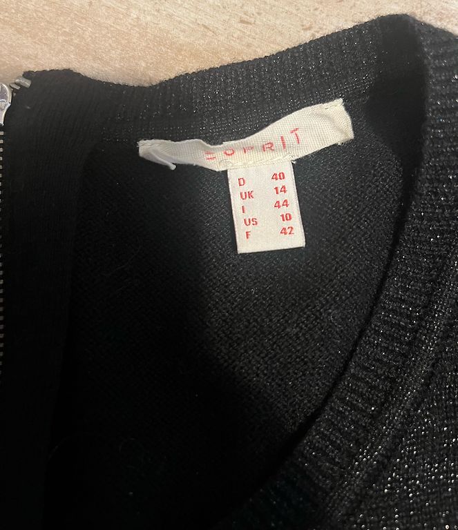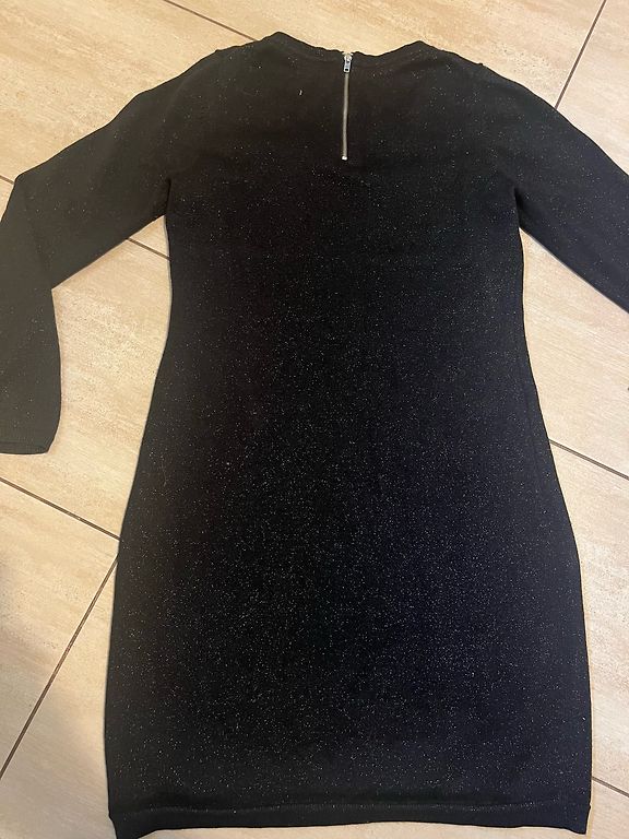Uus must COS kleit pitsidega. Kaenla alt -52 cm, pikkus -110 cm, puus -56 cm. On sisetaskud, ilma voodrita. Kangas ei veni. Minu varudest, ei sobi suuruse poolest.