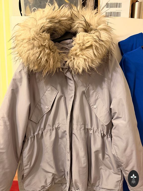 Super silta,pagarinātâ parka HH,L izmērs.Diemžêl ar trūkumiem jo loti mīļa un nēsāju parku divas ziemas kà rezerves jaku.Ir palikuši saži krāsu pilieni,ká ari spiedpogas abàs pusēs vajag nomainit.Visādi citādi super silta jaka.