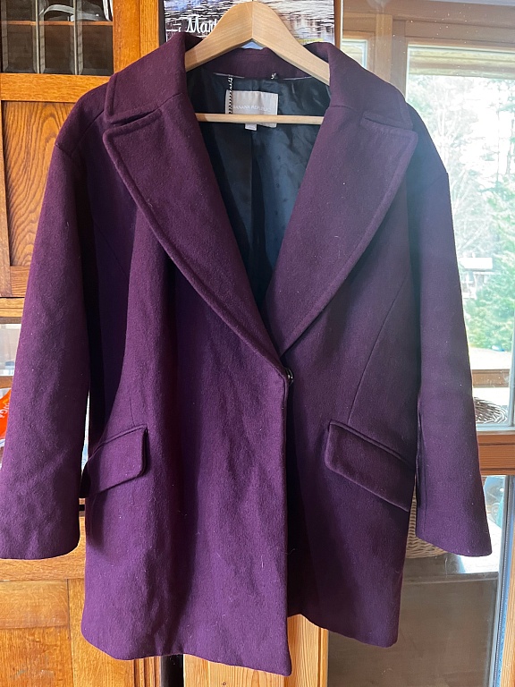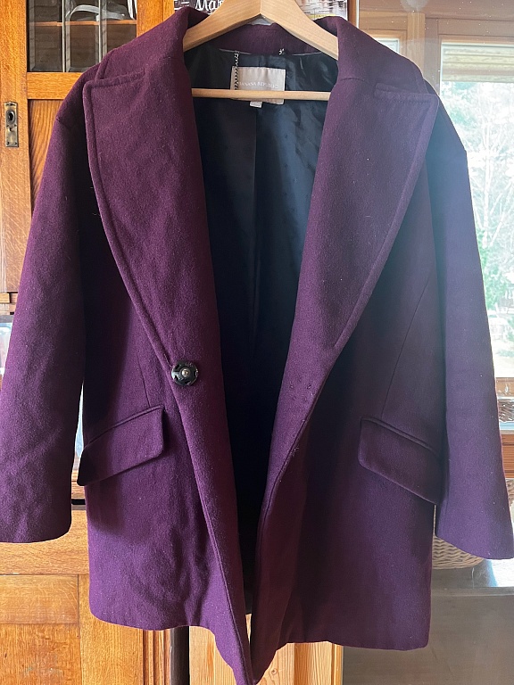 Atspalvis yra labiau bordo pusėje, nėra rudu atspalvių, kaip atrodo nuotraukose. Arčiau nuotraukų yra šiek tiek tiksliau. Paltas geros būklės - nėra susivėlęs ar suplyšęs. Gamintojas nurodo UK18 dydį.