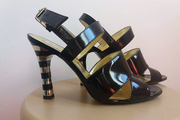 Gigi sandal satin black + white chystal 96 mm mimi ch heel
