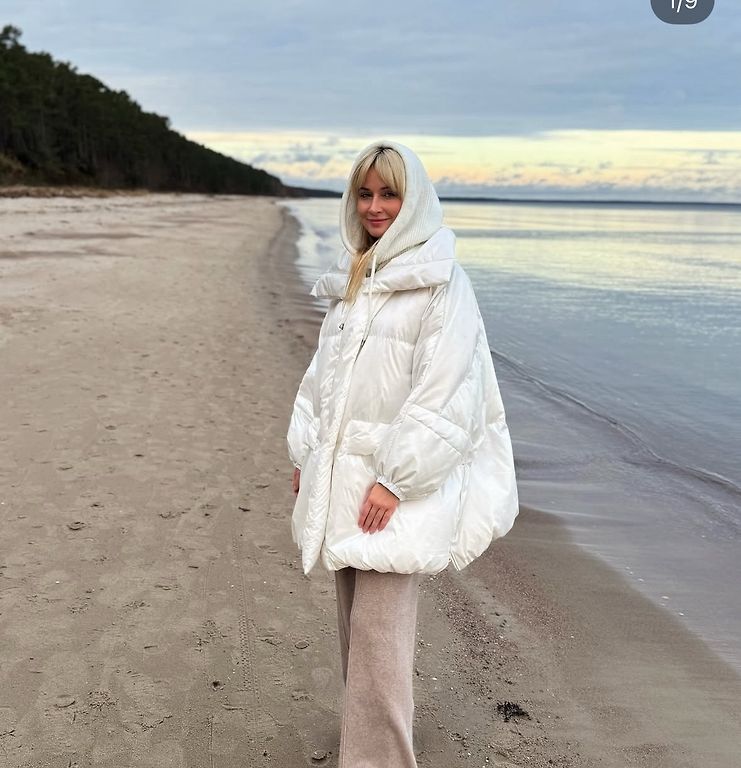Pūkainais mētelis ar termo oderi. Pildījums - dūnas un spalvas, silts. Kakla izgriezums dubults, var atpogāt stāvu, var piepogāt dubultu apkakli no ādas/dabīgās kažokādas. Garums 86 Rokas garums 64 No paduses līdz padusei 50 Viduklis 46 Gurni 55 Dpd/omniva uz pircēja rēķina Neliela atlaide iespējama, ja esat jau kaut ko pie manis iegādājies.