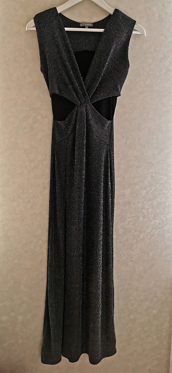 Роскошное блестящее платье. Обхват груди 100 см, длина 102 см, длина рукавов 65 см - на конце вставлена резинка, позволяющая регулировать нужную длину.