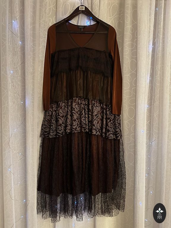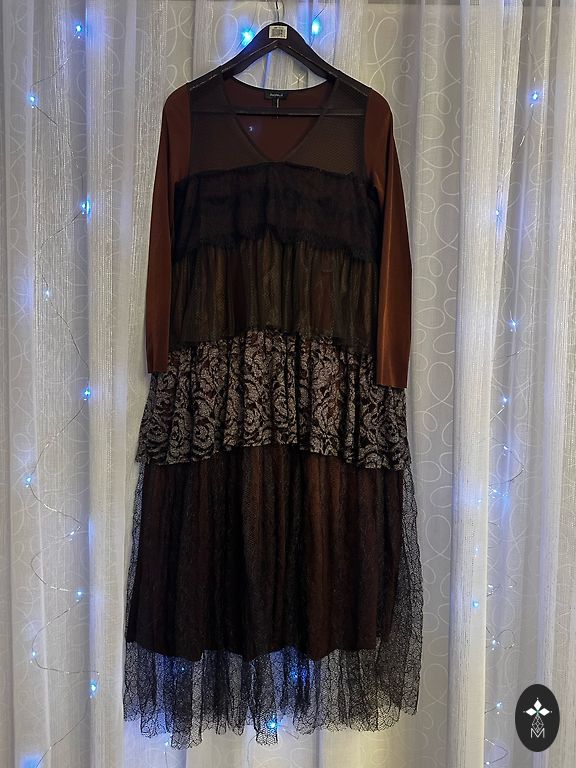 Длинное, элегантное платье. На талии сборка. Сзади разрез. На XS, носила на S.
