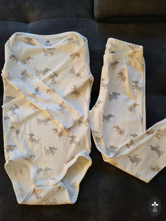 Bodysuit and pants in Christmas spirit. The bodysuit can be extended as the snap buttons are in 2 rows.