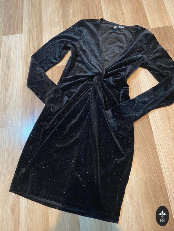 Krūtinės apimtis 80 cm, liemuo 66 cm, klubų apimtis 82 cm ir ilgis nuo krūtinės 72 cm, medžiaga tampri.
