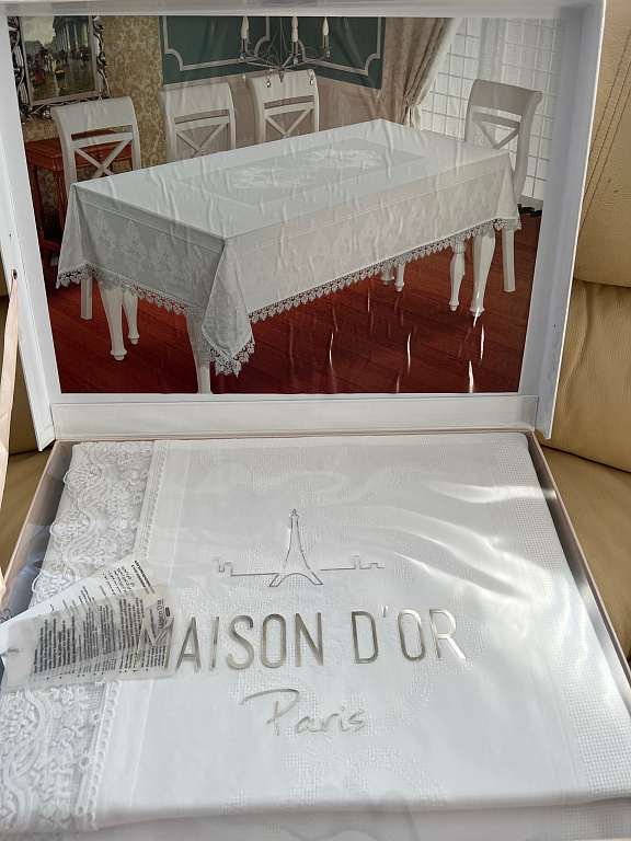 - Elegant rectangular tablecloth with *gold thread decoration*