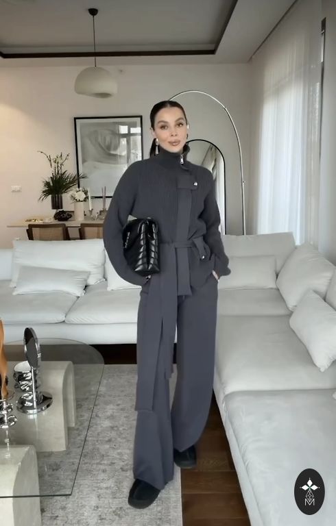 Трикотажный костюм на рост 165-170 Длина брюк 104 см, объём талии- до 80см - резинка, обхват бёдер - 90см. обхват груди 110, длина свитера- 70см. Ткань приятная к телу, можно носить и в зимнее время.