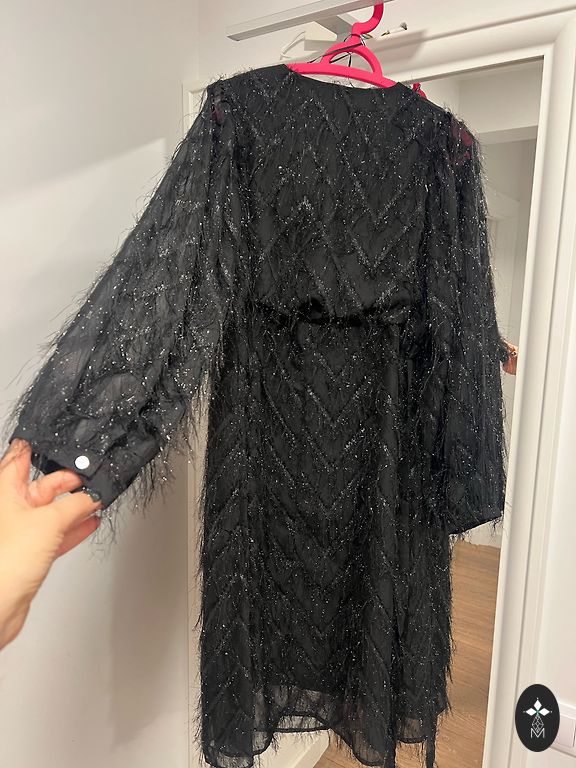40 dydis, tačiau kadangi tai halato tipo suknelė, tiks ir didesniam bei mažesniam dydžiui.