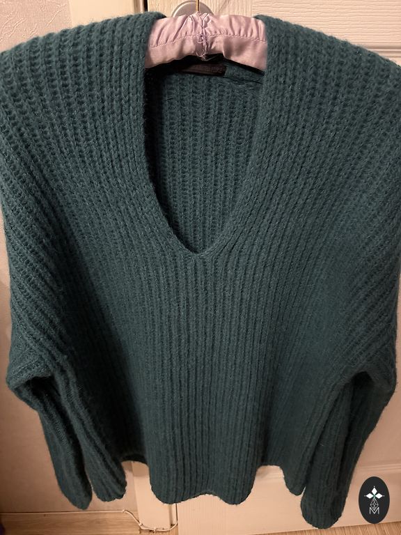 Half-wool (50% wool, 50% acrylic) sweater in salmon color. I bought it here, but it doesn't suit my figure. Measurements - length 65cm, between armpits 63cm, shoulders 43cm, sleeve 57cm. Shipping costs extra.