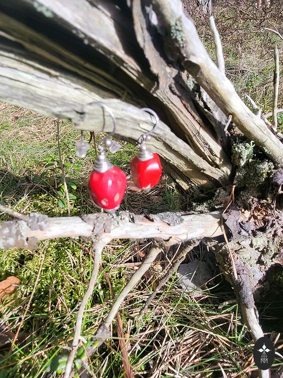 Диаметр 2.8 см, длина с подвесками 4.6 см.