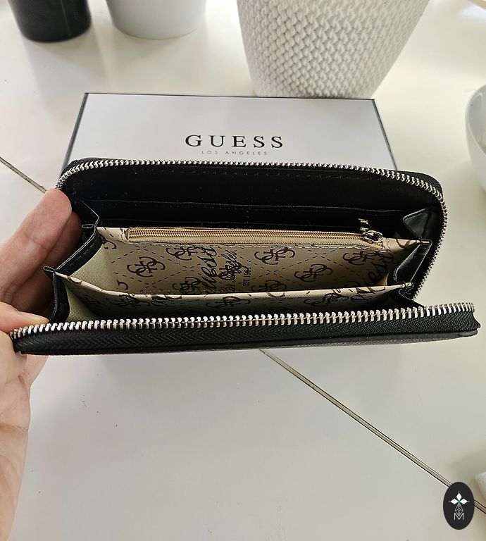 New Guess wallet, includes a box and a Guess dust bag.