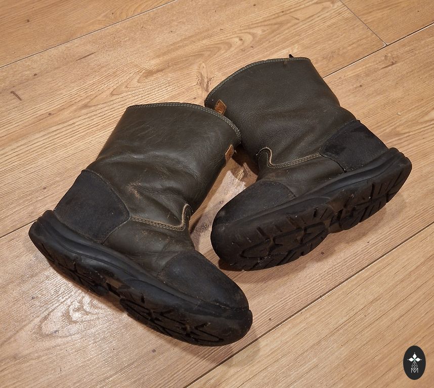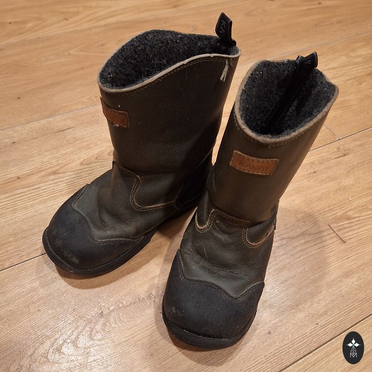 Size 23 Kamik waterproof rubber boots with insulation are perfect for a wet winter like we have now - your feet will be warm and dry. Easy to put on and fasten, as they can be tightened at the top, and there is a Velcro strap around the ankle for a better fit.