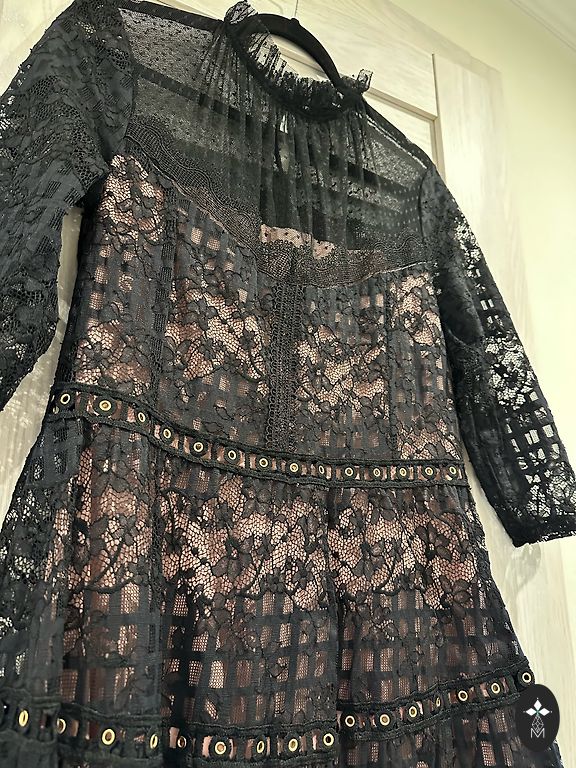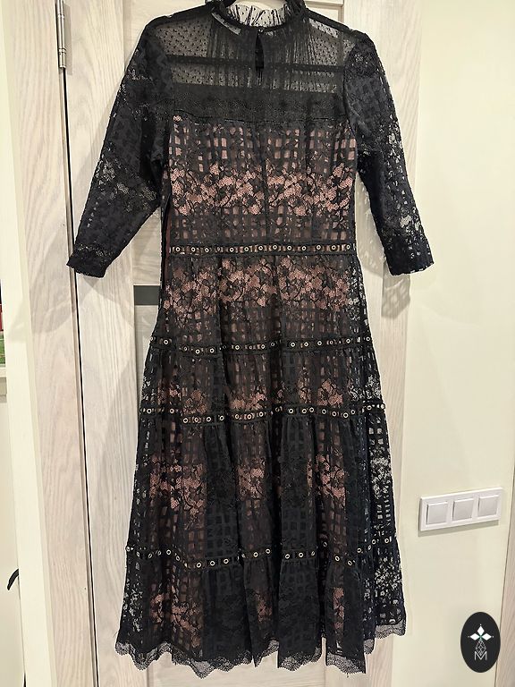 Ilgis 87 cm, krūtinė iki 116 cm, audinys aksominis, gėlė nenusiima.