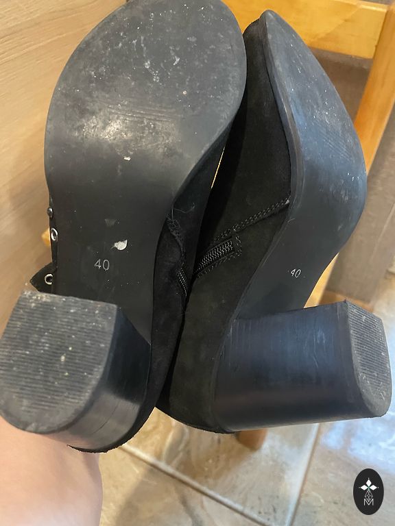 Suede boots with a flexible, non-slip sole. They are insulated and suitable for a high foot arch, as they are easy to put on.